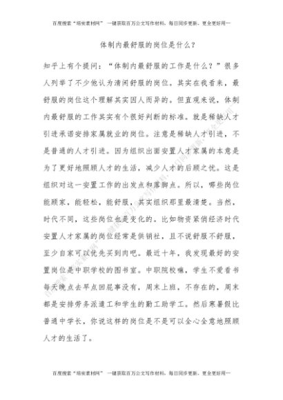 体制内最舒服的岗位是什么?[更多资源请百度搜索“培实素材网”]