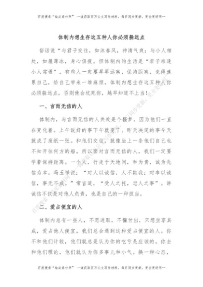 体制内想生存这五种人你必须躲远点[更多资源请百度搜索“培实素材网”]