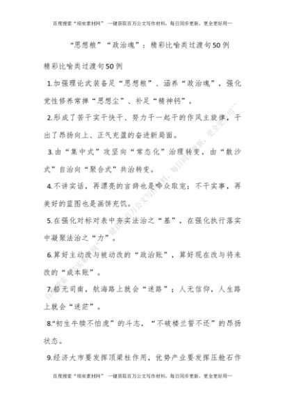 “思想粮”“政治魂”:精彩比喻类过渡句50例[更多资源请百度搜索“培实素材网”]