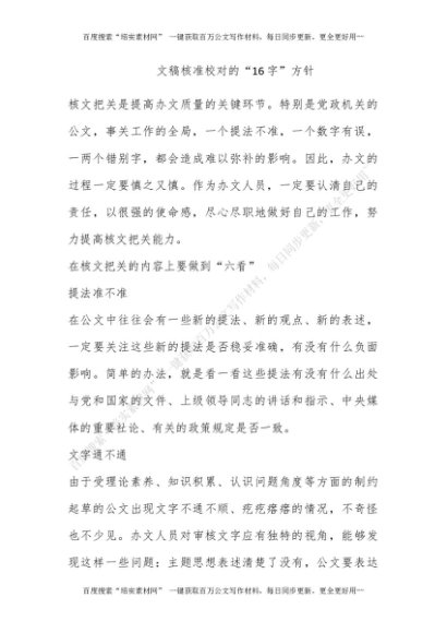 文稿核准校对的“16字”方针[更多资源请百度搜索“培实素材网”]
