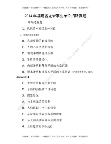 2014年福建省龙岩事业单位招聘真题[更多资源请百度搜索“培实素材网”]