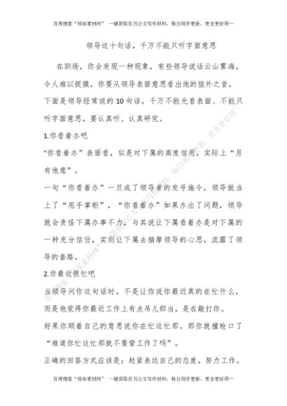 领导这十句话,千万不能只听字面意思[更多资源请百度搜索“培实素材网”]