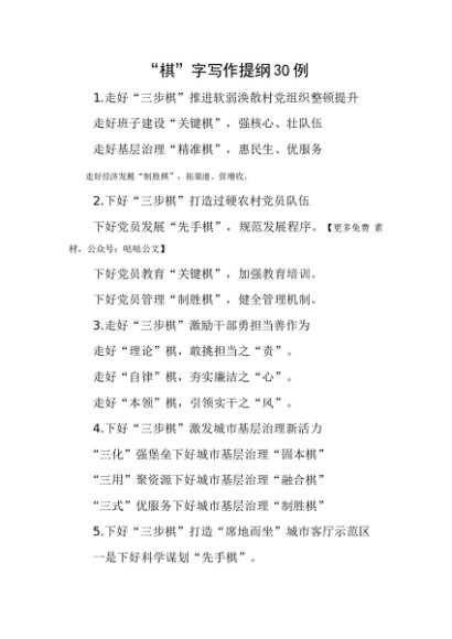 “棋”字写作提纲30例(1)[更多资源请百度搜索“培实素材网”]