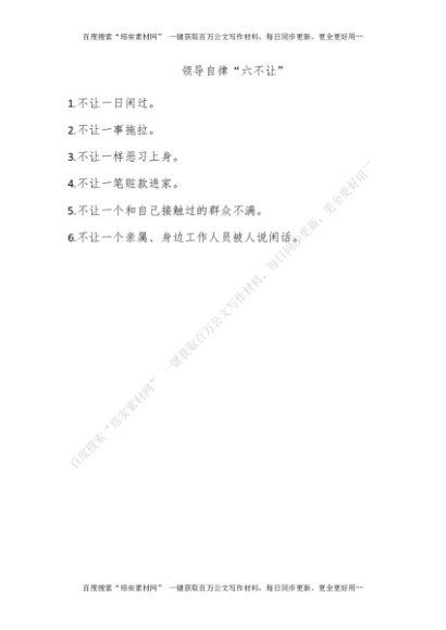 领导自律“六不让”[更多资源请百度搜索“培实素材网”]