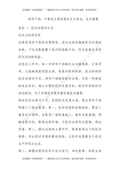 领导干部:干事创业要扮演好五大角色,至关重要![更多资源请百度搜索“培实素材网”]