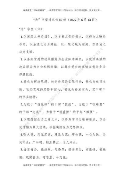 “为”字型排比句40例(2022年6月14日)[更多资源请百度搜索“培实素材网”]