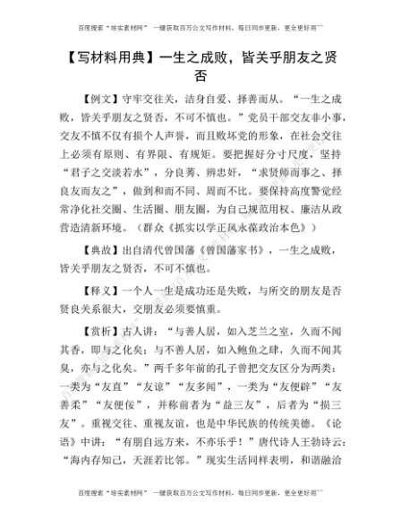 【写材料用典】一生之成败,皆关乎朋友之贤否[更多资源请百度搜索“培实素材网”]