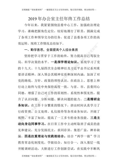 2019121242019年办公室主任年终工作总结[更多资源请百度搜索“培实素材网”]