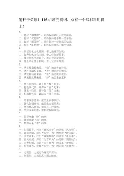 【提纲类】116组漂亮提纲,总有一个写材料用得上![更多资源请百度搜索“培实素材网”]