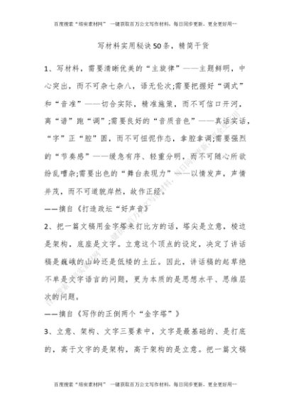 写材料实用秘诀50条,精简干货[更多资源请百度搜索“培实素材网”]