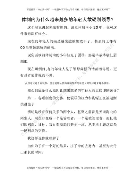 体制内为什么越来越多的年轻人敢硬刚领导?[更多资源请百度搜索“培实素材网”]