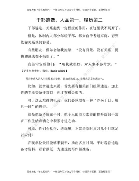干部遴选,人品第一,履历第二[更多资源请百度搜索“培实素材网”]
