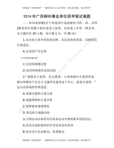 2014年广西柳州事业单位招考笔试真题[更多资源请百度搜索“培实素材网”]