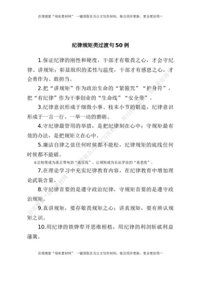 纪律规矩类过渡句50例[更多资源请百度搜索“培实素材网”]