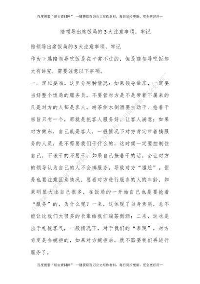 陪领导出席饭局的3大注意事项,牢记![更多资源请百度搜索“培实素材网”]