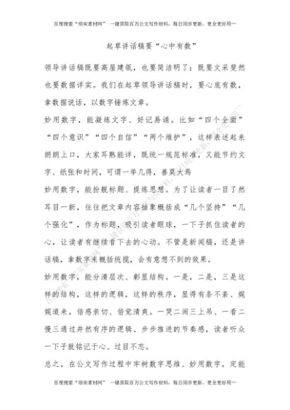 起草讲话稿要“心中有数”[更多资源请百度搜索“培实素材网”]