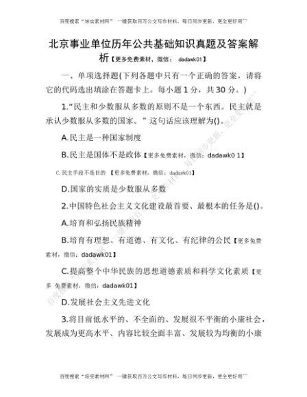 北京事业单位历年公共基础知识真题及答案解析[更多资源请百度搜索“培实素材网”]