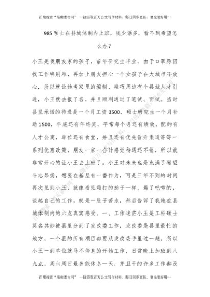 985硕士在县城体制内上班,钱少活多,看不到希望怎么办?[更多资源请百度搜索“培实素材网”]