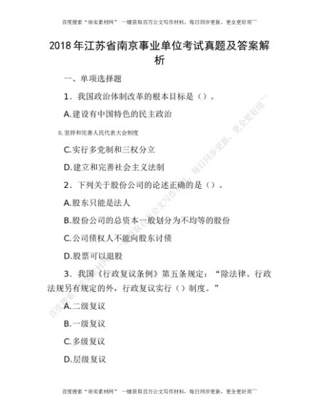 2018年江苏省南京事业单位考试真题及答案解析[更多资源请百度搜索“培实素材网”]