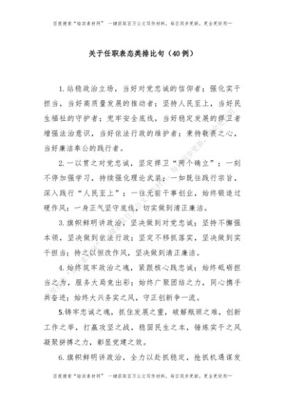 (40例)关于任职表态类排比句(1)[更多资源请百度搜索“培实素材网”]
