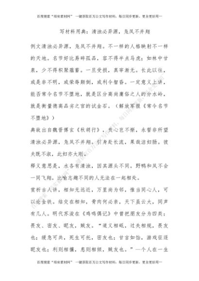 写材料用典:清浊必异源,凫凤不并翔[更多资源请百度搜索“培实素材网”]