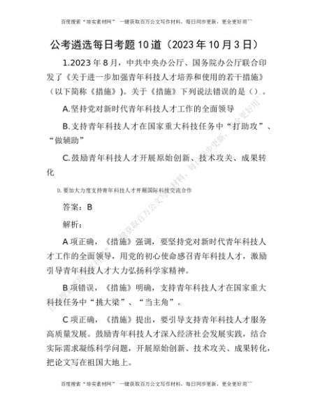 公考遴选每日考题10道(2023年10月3日)[更多资源请百度搜索“培实素材网”]
