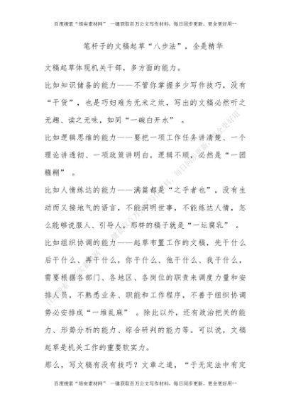 笔杆子的文稿起草“八步法”,全是精华![更多资源请百度搜索“培实素材网”]