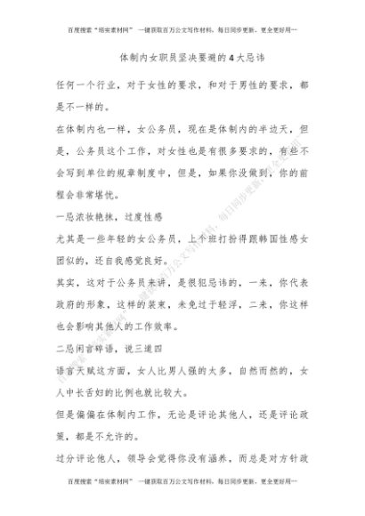 体制内女职员坚决要避的4大忌讳[更多资源请百度搜索“培实素材网”]