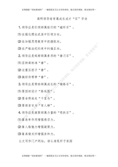 高明领导培育属成长成才“石”字诀[更多资源请百度搜索“培实素材网”]
