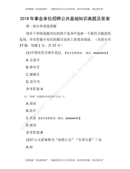 2018年事业单位招聘公共基础知识真题及答案[更多资源请百度搜索“培实素材网”]