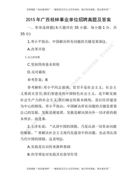 2015年广西桂林事业单位招聘真题及答案[更多资源请百度搜索“培实素材网”]