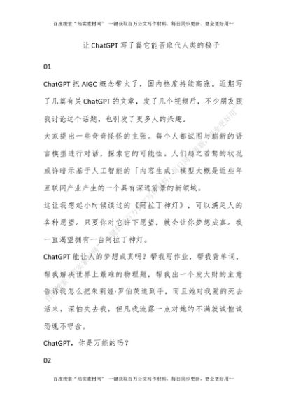 让ChatGPT写了篇它能否取代人类的稿子[更多资源请百度搜索“培实素材网”]