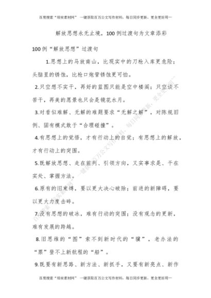 解放思想永无止境,100例过渡句为文章添彩![更多资源请百度搜索“培实素材网”]