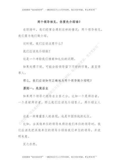 两个领导相见,你要先介绍谁?[更多资源请百度搜索“培实素材网”]