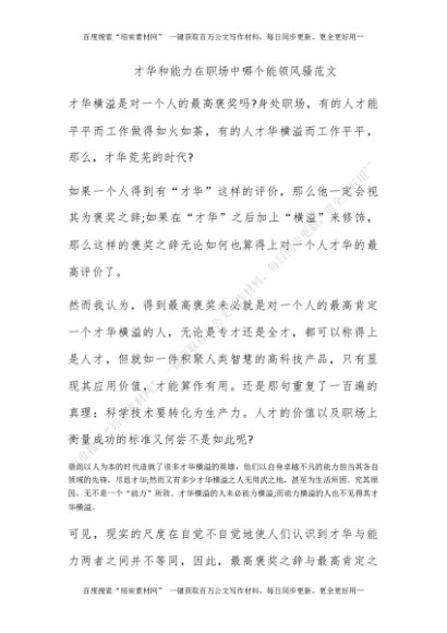 才华和能力在职场中哪个能领风骚范文[更多资源请百度搜索“培实素材网”]