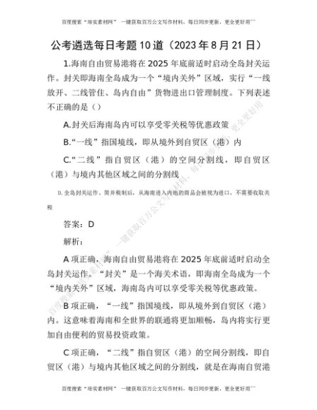 公考遴选每日考题10道(2023年8月21日)[更多资源请百度搜索“培实素材网”]