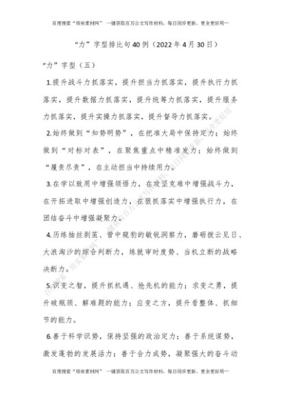 “力”字型排比句40例(2022年4月30日)[更多资源请百度搜索“培实素材网”]