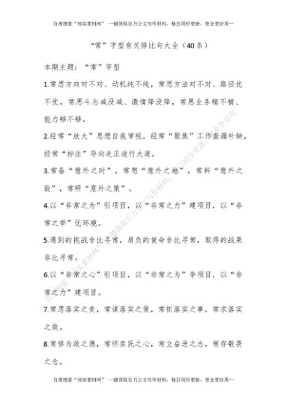 “常”字型有关排比句大全(40条)[更多资源请百度搜索“培实素材网”]