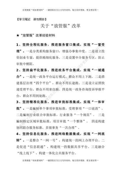 【提纲类】关于“放管服”改革[更多资源请百度搜索“培实素材网”]