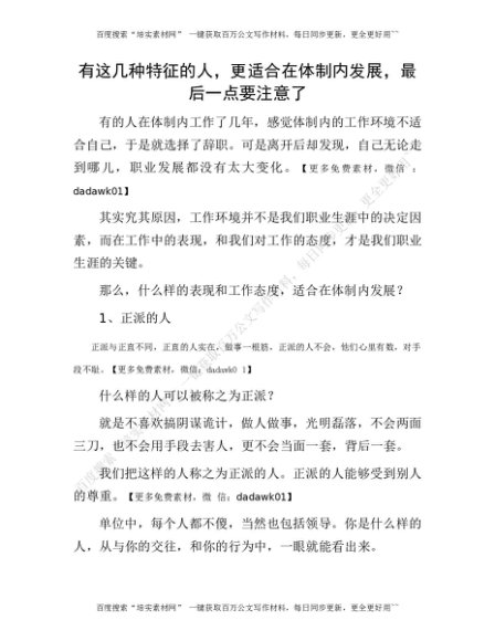 有这几种特征的人,更适合在体制内发展,最后一点要注意了[更多资源请百度搜索“培实素材网”]