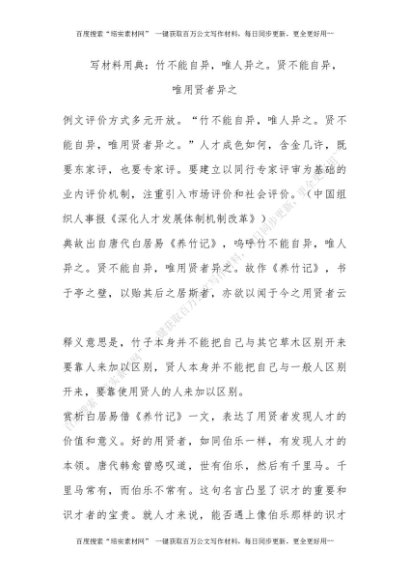 写材料用典:竹不能自异,唯人异之。贤不能自异,唯用贤者异之[更多资源请百度搜索“培实素材网”]
