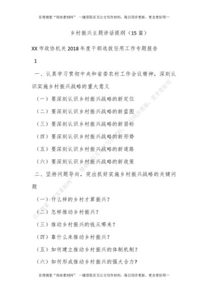 乡村振兴主题讲话提纲(15篇)[更多资源请百度搜索“培实素材网”]