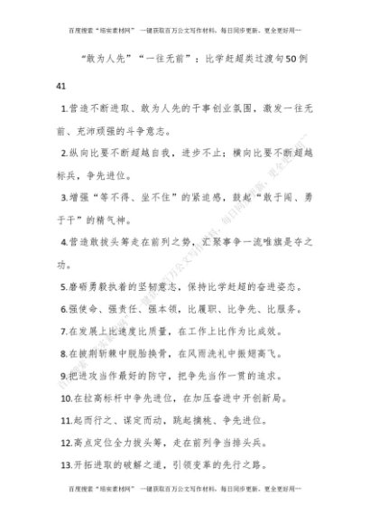 “敢为人先”“一往无前”:比学赶超类过渡句50例[更多资源请百度搜索“培实素材网”]