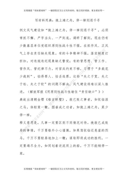 写材料用典:挽上滩之舟,停一棹则退千寻[更多资源请百度搜索“培实素材网”]