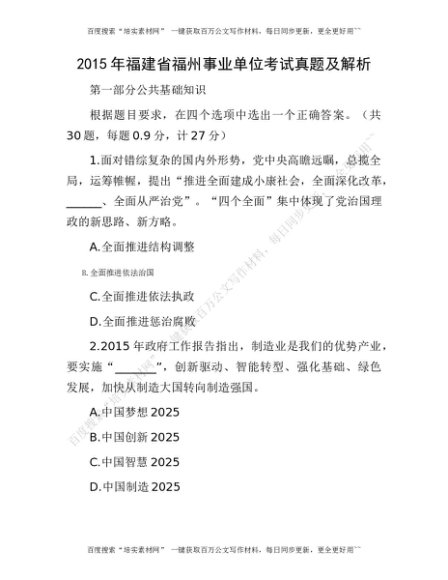 2015年福建省福州事业单位考试真题及解析(1)[更多资源请百度搜索“培实素材网”]