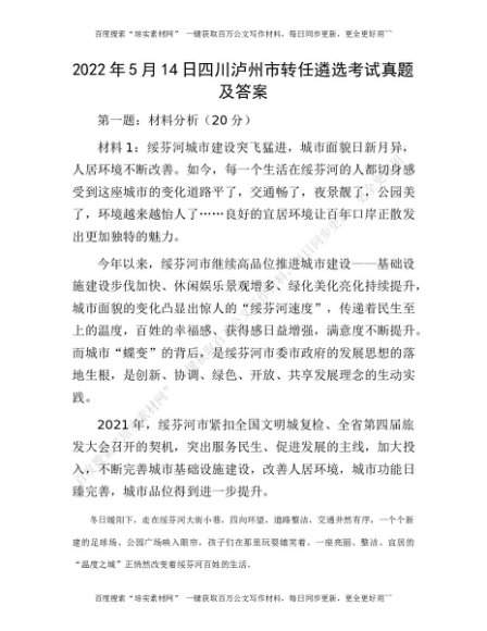 2022年5月14日四川泸州市转任遴选考试真题及答案[更多资源请百度搜索“培实素材网”]