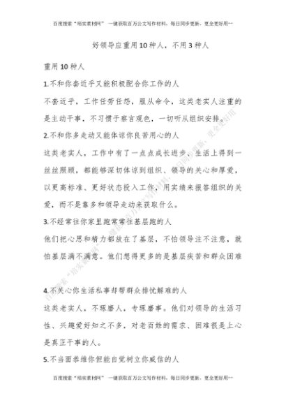 好领导应重用10种人,不用3种人[更多资源请百度搜索“培实素材网”]