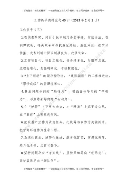 工作抓手类排比句40例(2023年2月1日)[更多资源请百度搜索“培实素材网”]