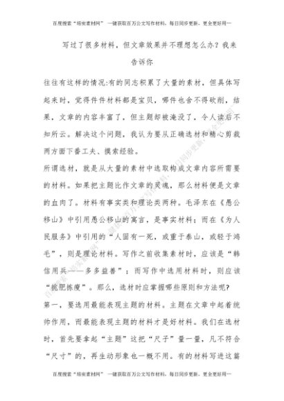 写过了很多材料,但文章效果并不理想怎么办?我来告诉你……[更多资源请百度搜索“培实素材网”]