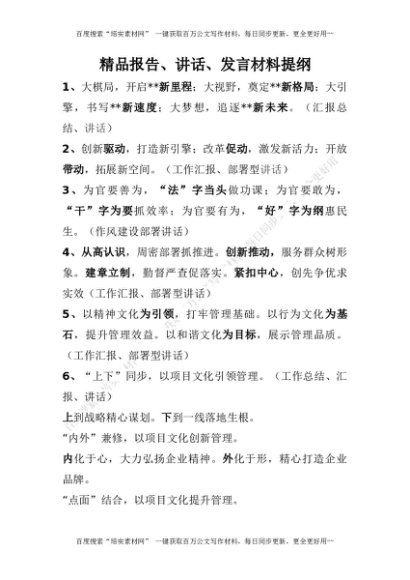 【提纲类】精品报告、讲话、发言材料提纲[更多资源请百度搜索“培实素材网”]
